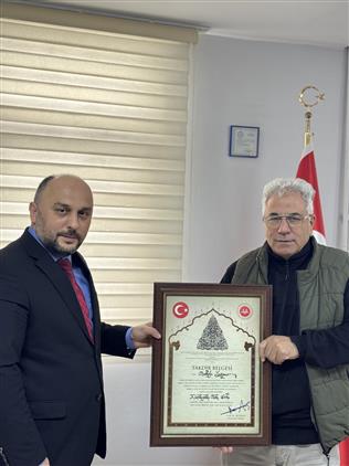 Diyanet İşleri Başkanlığımz tarafından gönderilen belge, İlçe Müftümüz Recai ÖĞÜK tarafından Mustafa YAĞMUR’a takdim edildi.