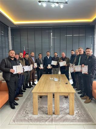 Bu kapsamda semineri başarıyla tamamlayan görevlilerimize Katılım Belgeleri İlçe Müftümüz Mustafa KABAOĞLU, Şube Müdürümüz Seyfullah İYEM ve İlçe Vaizimiz Ömer GÜLLER tarafından takdim edildi.