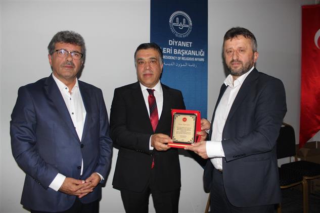 Toplantı sonunda emekli olan ve görev yeri değişen personele İl Müftümüz Ali Çakmak tarafından plaket takdim edildi.