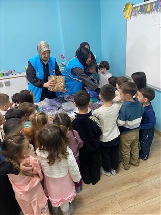 Türkiye Diyanet Vakfı Ordu Şubesi Kadın Kolları, İl Müftüsü Ali Çakmak’ın riyasetinde yürütülen “İlmek İlmek İyilik” projesi kapsamında, gönüllülerin hazırladığı atkı ve bereleri Ulubey 4–6 yaş Kur’an Kursu öğrencilerine karne hediyesi olarak takdim etti.