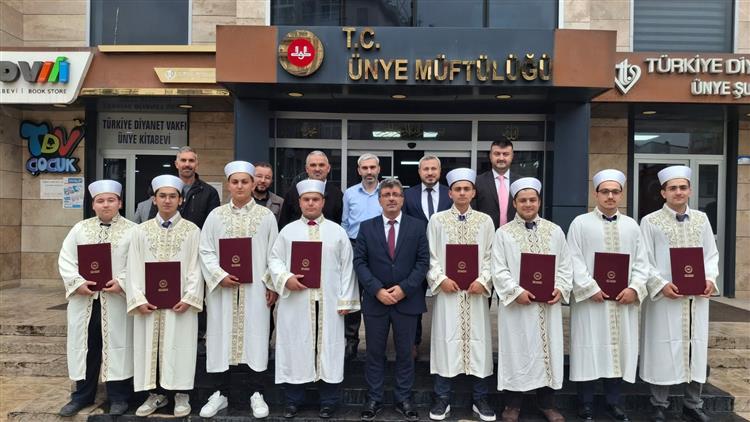 26 Eylül 2025 Cuma günü İlçe Müftülüğümüzde düzenlenen törene İlçe Müftümüz Ali Fuat Baycan, Çaybaşı İlçe Müftümüz Muhammed Zahid Tonkal, Müftülük Şube Müdürleri Muhammet Fethullah Peru, Hasan Övmek ve Hafızlarımızın velileri katılarak 17 Hafızımıza belgeleri takdim edildi.